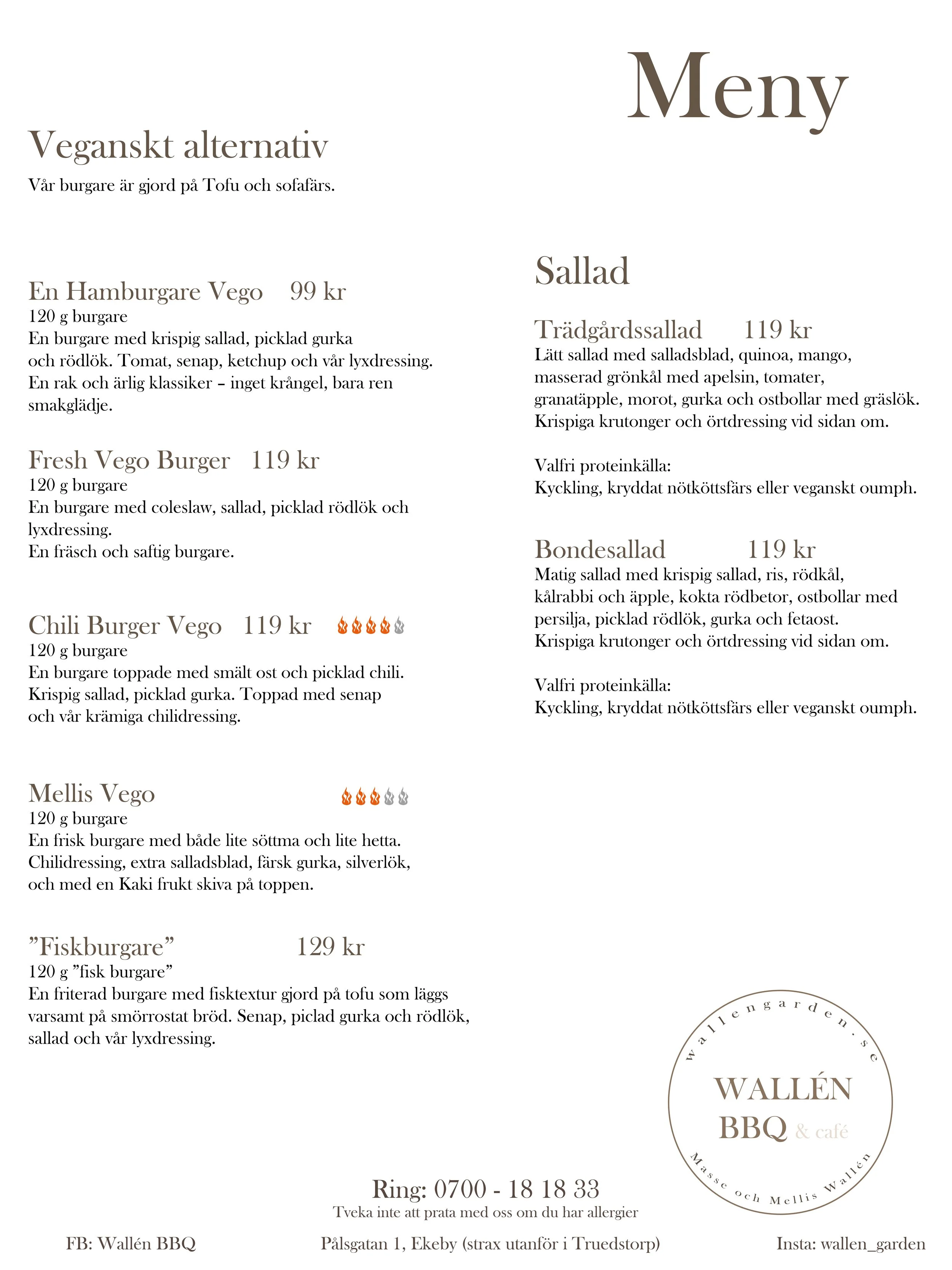 Allergier: Vi är en nöt fri matvagn, har glutenfritt bröd och har du någon allergi så var inte rädd för att fråga om vi har något som passar dig.