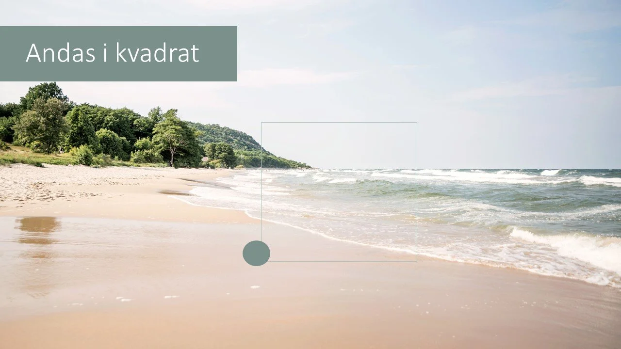 Därför vill jag tipsa dig om kvadratandning – ett av de mest pålitliga sätten att snabbt skapa lugn. Titta på en kvadrat i rummet (de finns nästan överallt). Låt blicken följa en sida i taget och andas i fyra jämna steg:
