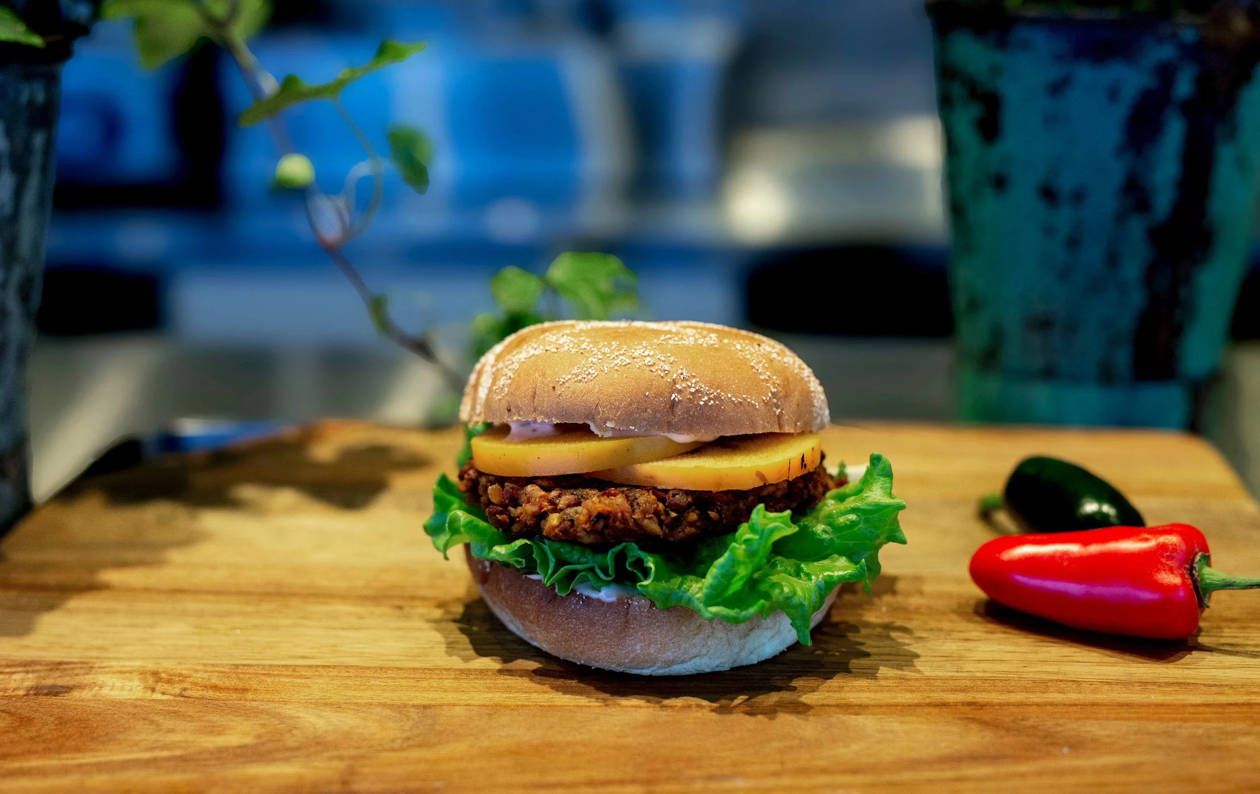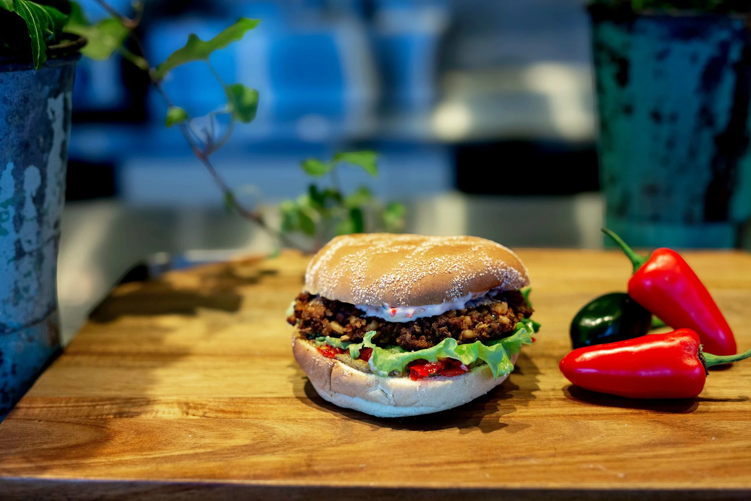 En fräsch och saftig burgare.